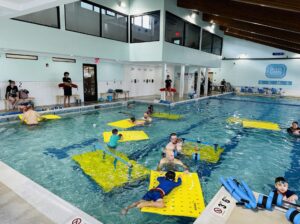 Our 25 yard pool is specifically designed with both shallow and deep water areas to incorporate deep water skills into our curriculum which are crucial for water safety, confidence, and advanced athlete development.